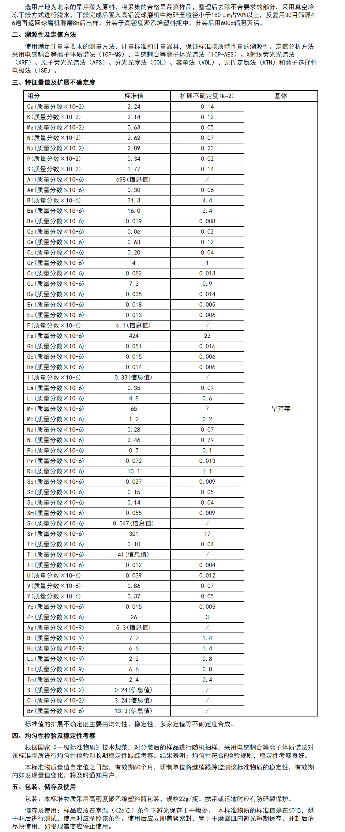 商品名稱:GBW10229 旱芹菜成分分析標準物質 22g/瓶,59組分